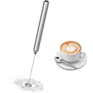 Milk Frother with Stainless Steel Stand, Battery Operated Whisk Maker Hand Drink Mixer for Lattes, Coffee, Cappuccino, Matcha,