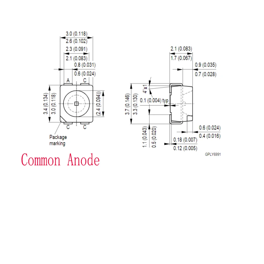 – Package: White PLCC – 4 package with colorless clear resin.