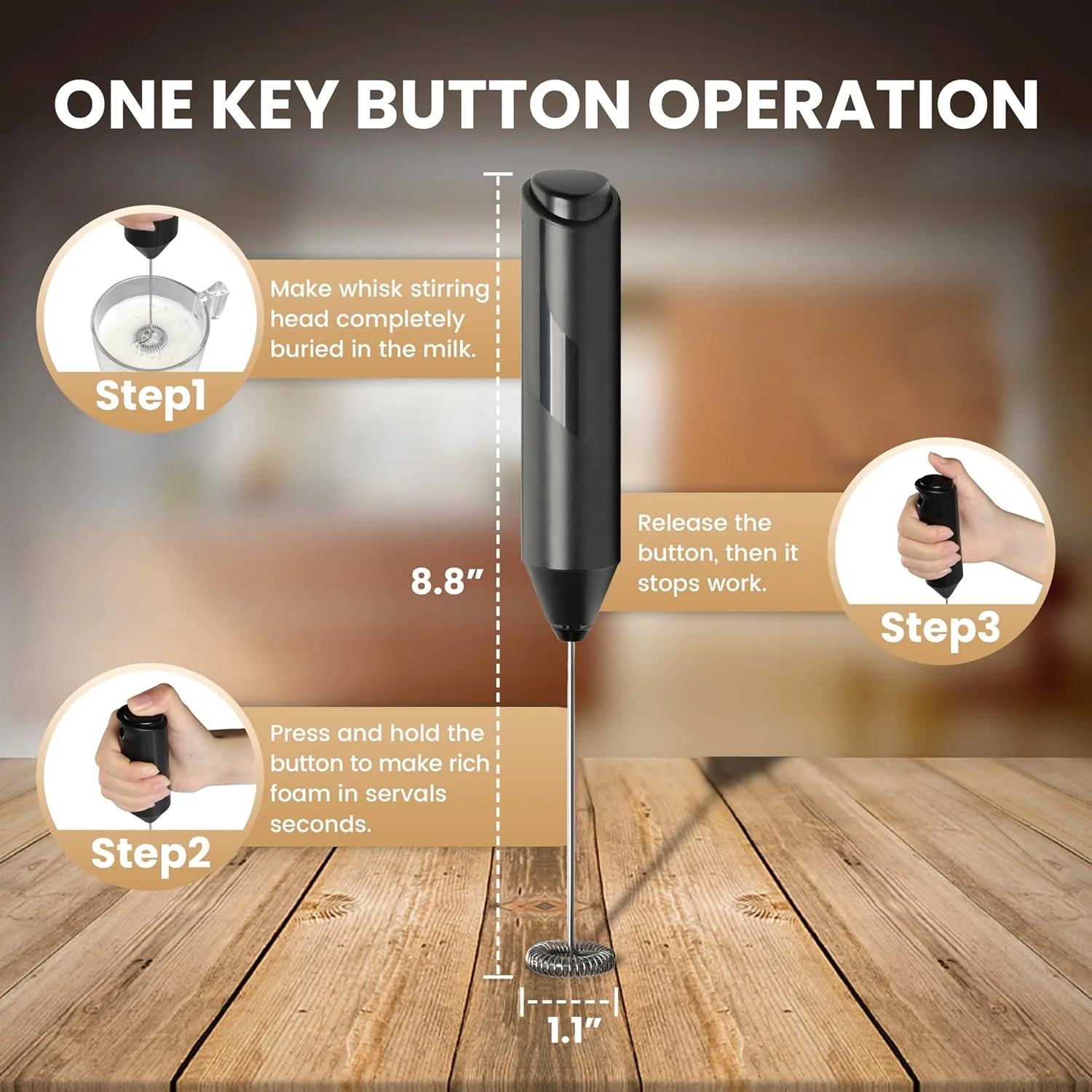 Milk Frother with Stainless Steel Stand, Battery Operated Whisk Maker Hand Drink Mixer for Lattes, Coffee, Cappuccino, Matcha,