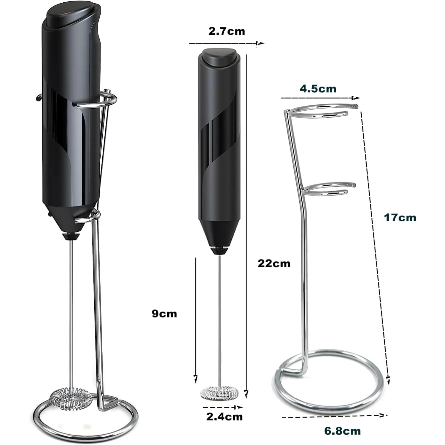 1. This sleek and compact milk frother with a stainless steel stand is perfect for creating creamy foam for your favorite coffee drinks. Its lightweight and ergonomic handle make it easy to use, while its black color adds a touch of sophistication to your kitchen.