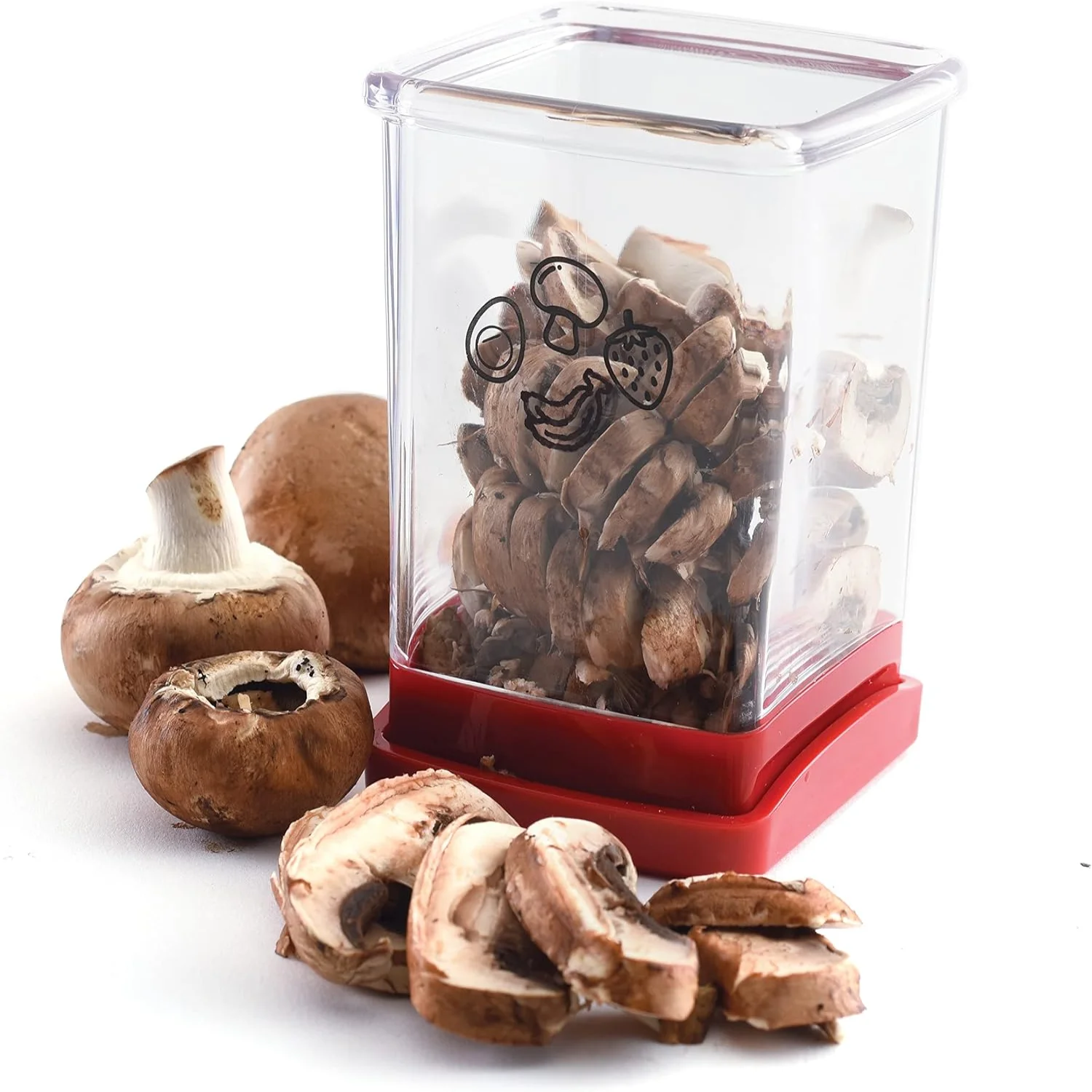 1. Slice through eggs with ease using our Speed Slicer with Push Plate – a heavy-duty slicer in a vibrant red color.